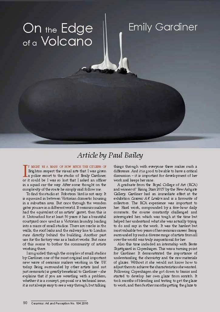 Ceramics Art & Perception, USA, Sept-Dec 2016, 'On The Edge of a Volcano: Emily Gardiner'